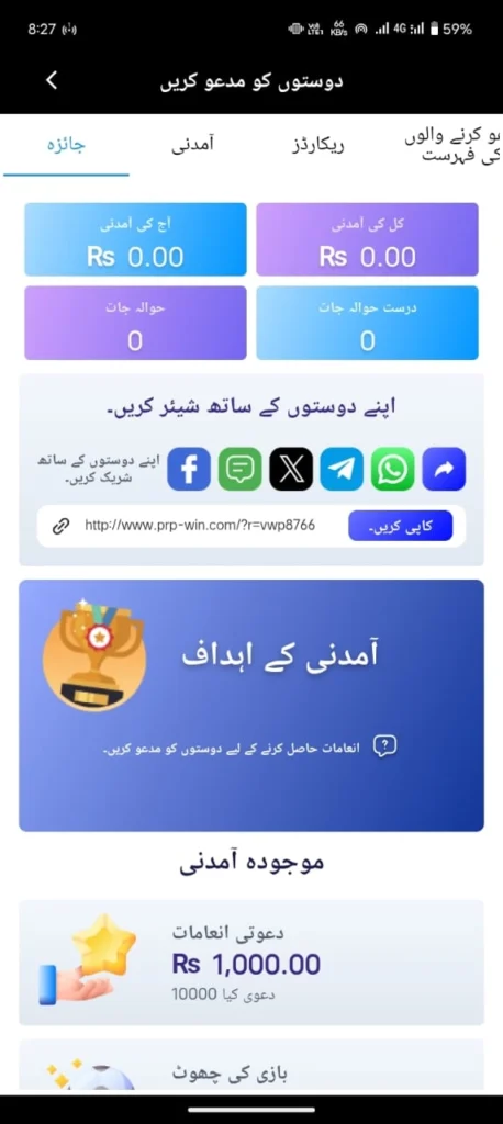 Invite friends to join PRPWin and earn extra PKR. Referral bonuses increase when friends deposit. Share the game link to grow rewards. You can play challenges together for added fun. Playing with friends makes every session more exciting.